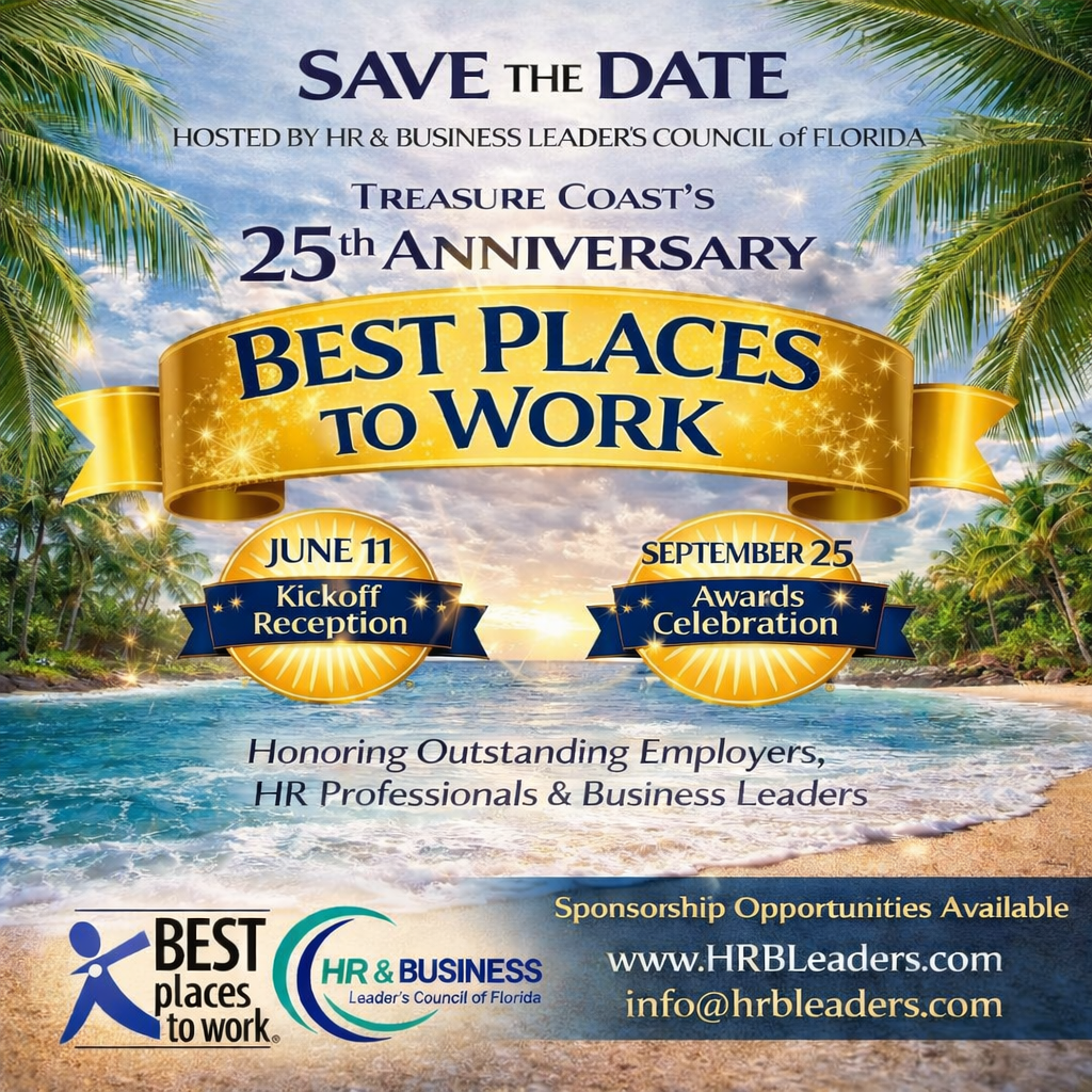 Join HR & Business Leader’s Council of Florida to celebrate the Treasure Coast’s 25th Anniversary of Best Places to Work, honoring outstanding employers, HR professionals, and business leaders in the region.